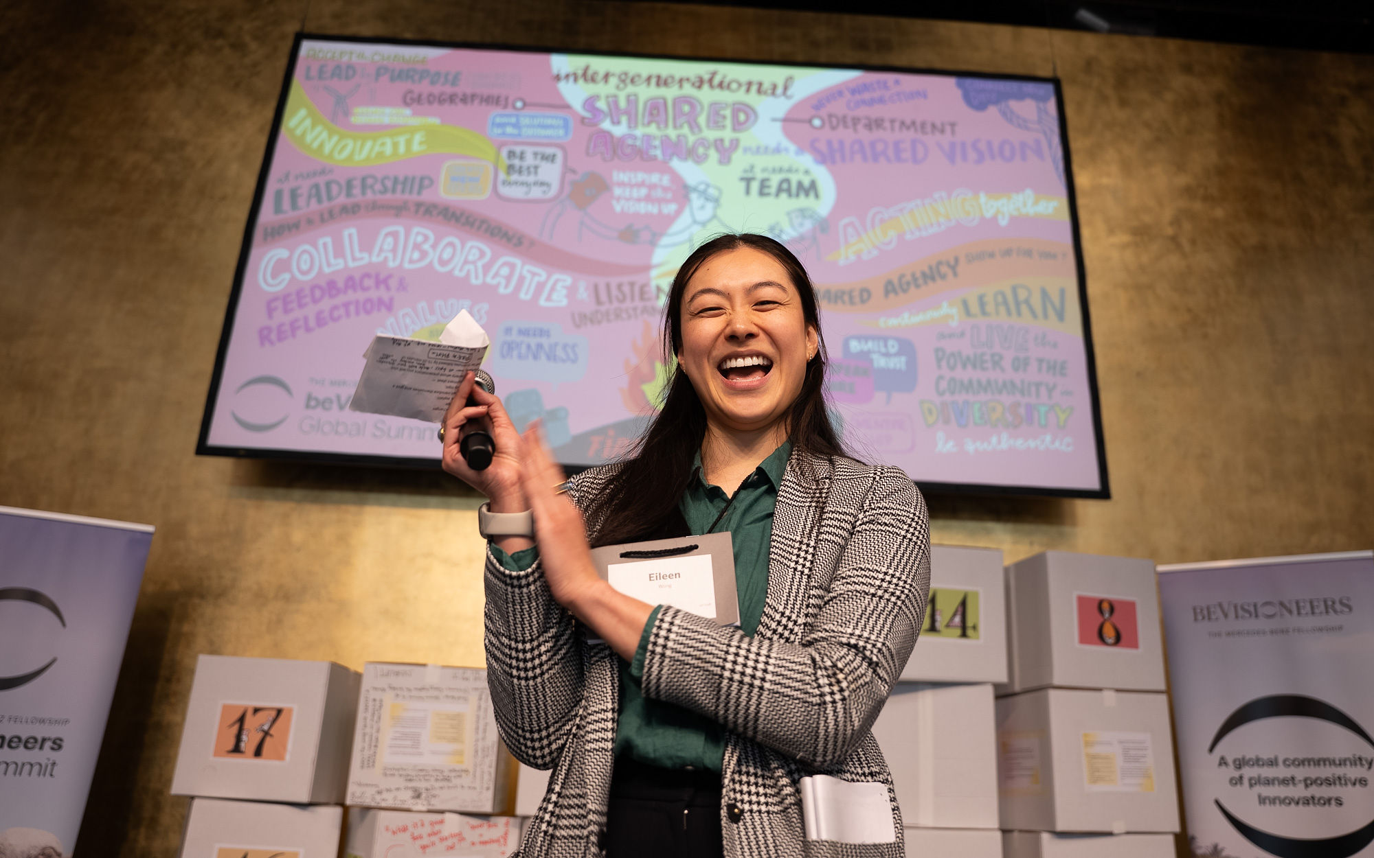 Throughout the days of the Global Summit, eight Fellows from Cohort 1 and 2 took to the stage to present their planet-positive projects. Representing diverse regions and sectors, each Fellow reflected on the progress made since joining beVisioneers and how the Fellowship’s support and community shaped their journey. Through their stories, they brought the theme of Shared Agency to life—showing how collective effort can turn bold ideas into real-world impact.